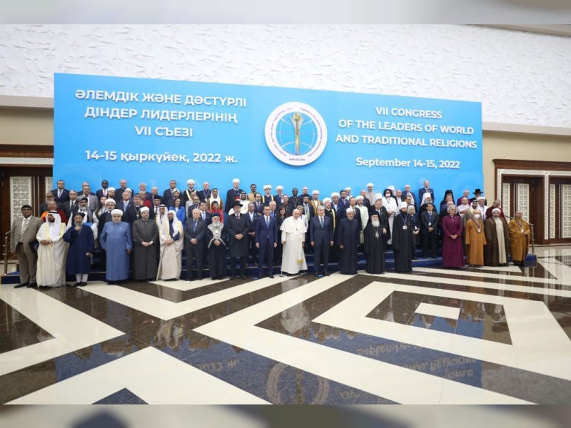 Στις 14 και 15 Σεπτεμβρίου 2022 πραγματοποιήθηκε στην Αστάνα, πρωτεύουσα του Καζακστάν, συνέδριο με τίτλο "Ο ρόλος των ηγετών των παγκόσμιων και παραδοσιακών θρησκειών στην πνευματική και κοινωνική ανάπτυξη του ανθρώπινου πολιτισμού στη μετα-πανδημική περίοδο". Η εκδήλωση είδε τη συμμετοχή του Kassym-Jomart Tokayev, πρόεδρο του Καζακστάν, του Ιμάμη Ahmed el-Tayyeb και του Πάπα Φραγκίσκου και υπέγραψαν το Σύμφωνο της Ανθρώπινης Αδερφότητας